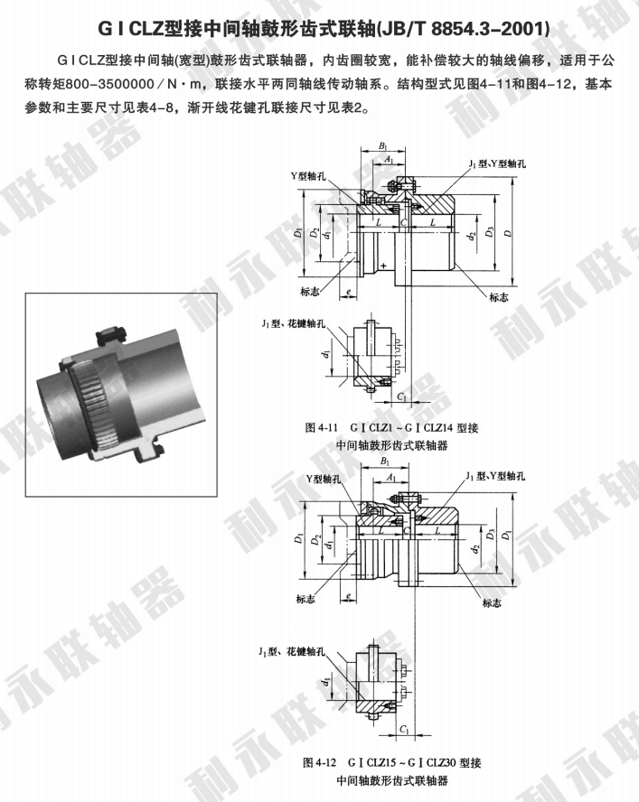 -GICLZ型—鼓形齒式聯軸器鼓形齒面使內、外齒的接觸條件 ,避免了在角位移條件下直齒齒端棱邊擠壓,應力集中的弊端,同時 了齒面摩擦、磨損狀況,降低了噪聲,維修周期長。外齒套齒端呈喇叭形狀,使內、外齒裝拆 方便。